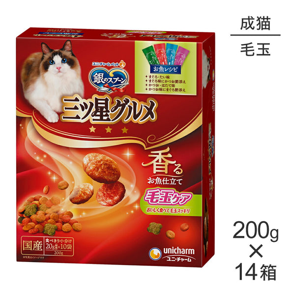 【200g×14箱】ユニ・チャーム 銀のスプーン 三ツ星グルメ 香るお魚仕立て 毛玉ケア 成猫用 4種のアソート お魚レシピ (猫・キャット)