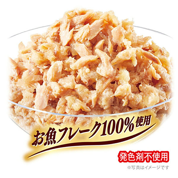 魚介類(まぐろ、かつお、フィッシュエキス)、調味料、増粘多糖類、ミネラル類(Cl、K)、ビタミン類(B1、B2、B6、B12、E)