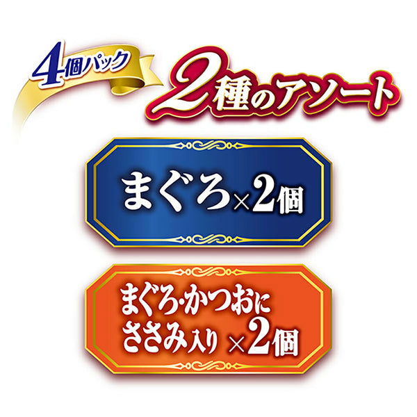 <まぐろ>魚介類(まぐろ、かつお、フィッシュエキス)、調味料、増粘多糖類<まぐろ・かつおにささみ入り>魚介類(かつお、まぐろ、フィッシュエキス)、肉類(ささみ)、調味料、増粘多糖類