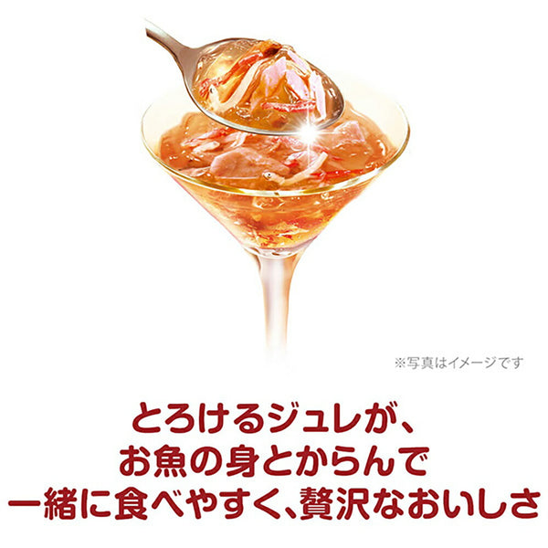・お魚のうまみがたっぷりなとろけるジュレが、お魚の身とからんで一緒に食べやすく、贅沢なおいしさを実現。