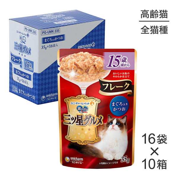 【35g×160袋】ユニ・チャーム 銀のスプーン 三ツ星グルメ パウチ フレーク 15歳頃から まぐろ入りかつお ウェット (猫・キャット)