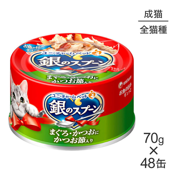 【70g×48缶】ユニ・チャーム 銀のスプーン 缶 成猫用 まぐろ・かつおにかつお節入り ウェット (猫・キャット)