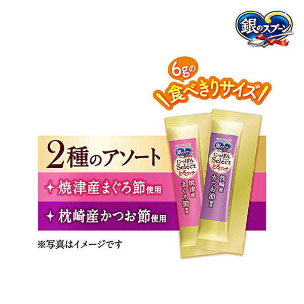 【6g×8本×48袋】ユニ・チャーム 銀のスプーン おやつ にっぽんSelect とろリッチ 2種のアソート 成猫用 まぐろ節&かつお節 (猫・キャット)