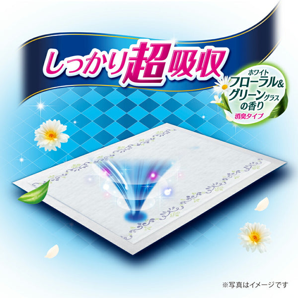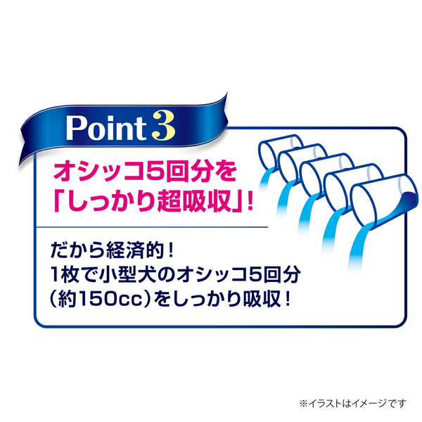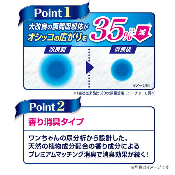 また高速吸収ポリマーがオシッコを瞬間吸収して長時間ニオイを閉じ込め、香り成分によるプレミアムマッチング消臭する香り消臭タイプ。オシッコ3回分(約90)をしっかり超吸収。