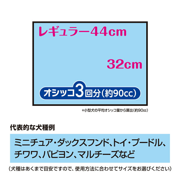 ●1枚で小型犬のオシッコ3回分(約90cc)を超吸収し経済的 ※小型犬の平均オシッコ量から算出