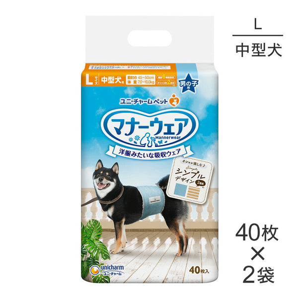 【40枚×2袋】ユニ・チャーム マナーウェア 男の子用 Lサイズ 中型犬用 モカストライプ・ライトブルージーンズ おむつ (犬・ドッグ)