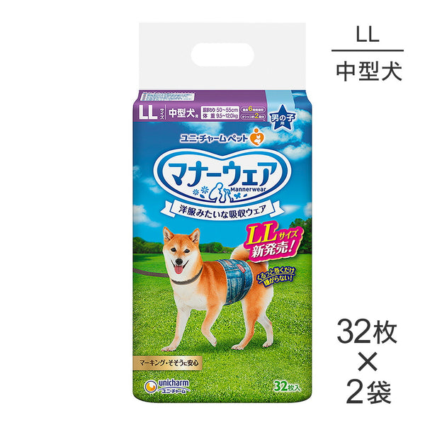 【32枚×2袋】ユニ・チャーム マナーウェア 男の子用 LLサイズ 中型犬用 おむつ (犬・ドッグ)