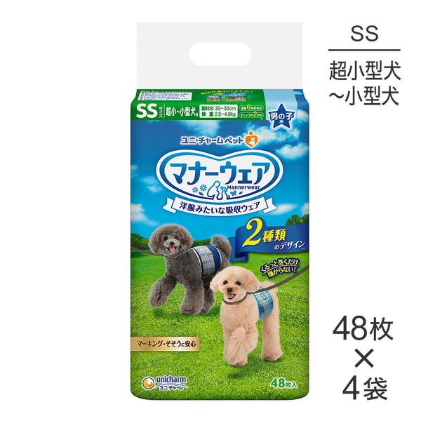 【48枚×4袋】ユニ・チャーム マナーウェア 男の子用 SSサイズ 超小型犬~小型犬用 青チェック・紺チェック おむつ (犬・ドッグ)