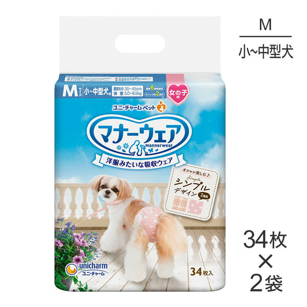 【34枚×2袋】ユニ・チャーム マナーウェア 女の子用 Mサイズ 小型犬~中型犬用 モーヴピンクドット・ピンクチェック おむつ (犬・ドッグ)