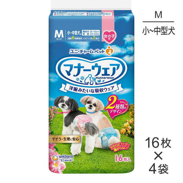 【16枚×4袋】ユニ・チャーム マナーウェア 女の子用 Mサイズ 小型犬~中型犬用 ピンクリボン・青リボン おむつ (犬・ドッグ)