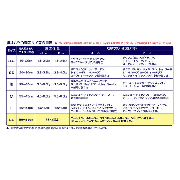 動きやすく、フィットしてオシッコやウンチをしっかりガード。高齢犬のおもらし、介護、病気治療や術後ケアにもぴったりの紙オムツです。