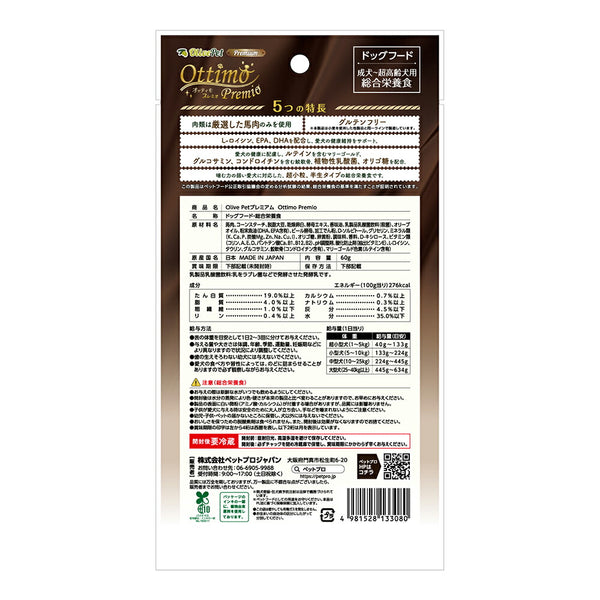 【メール便】【60g×2袋】ペットプロジャパン HappyDays Olive Petプレミアム オッティモ プレミオ 成犬~超高齢犬用 (犬・ドッグ)