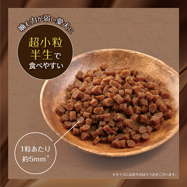 半生で超小粒なので噛む力の衰えた超高齢犬にも対応しています。