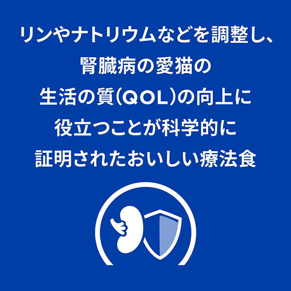 ヒルズの栄養学者と獣医師が開発したプリスクリプション・ダイエット 猫用 k/d ケイディーは、リンやナトリウムなどの調整により、あなたの愛猫の腎臓ケアをサポートする特別療法食です。また新たにベタインとヒルズ独自の繊維ブレンド「アクティブバイオームキドニーディフェンス」を採用することで、マイクロバイオーム(腸内細菌叢)を活性化し、腎臓の健康に貢献します。