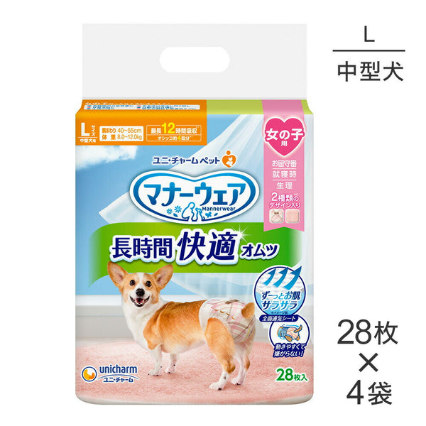 【28枚×4袋】ユニ・チャーム マナーウェア 長時間快適オムツ 女の子用 Lサイズ 中型犬用 (犬・ドッグ)