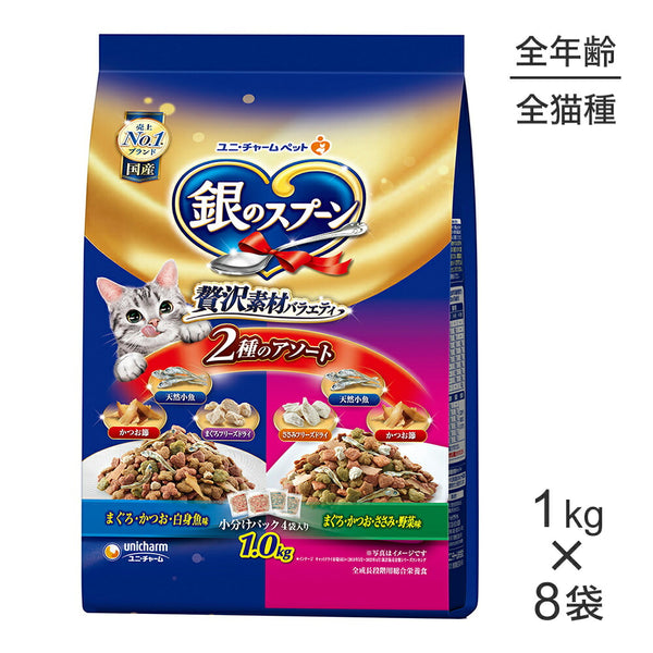【1kg×8袋】ユニ・チャーム 銀のスプーン 贅沢素材バラエティ 全年齢用 2種のアソート (猫・キャット)