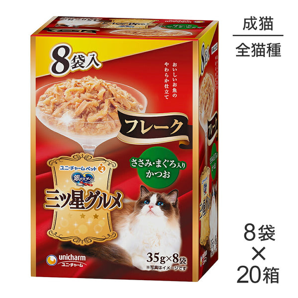 【35g×8袋×20箱】ユニ・チャーム 銀のスプーン 三ツ星グルメ パウチ フレーク 成猫用 ささみ・まぐろ入りかつお ウェット (猫・キャット)