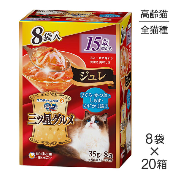 【35g×8袋×20箱】ユニ・チャーム 銀のスプーン 三ツ星グルメ パウチ ジュレ 15歳頃から まぐろ・かつおにしらす・かにかま添え ウェット (猫・キャット)