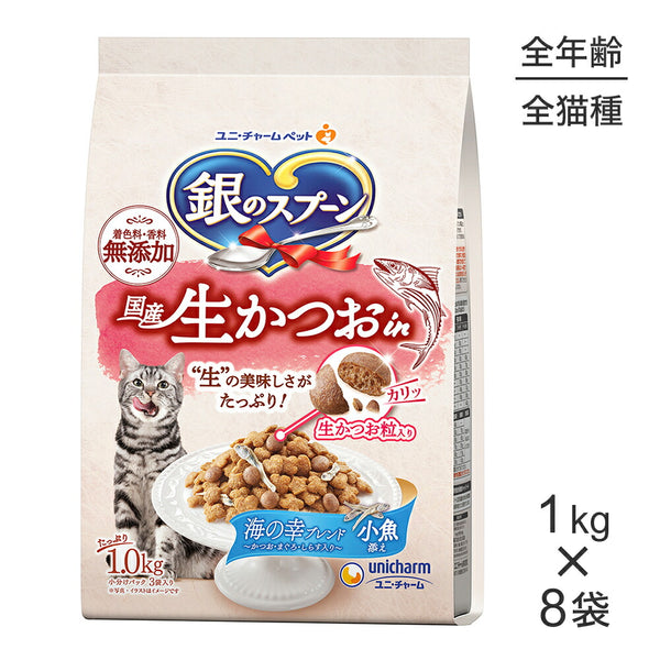 【1kg×8袋】ユニ・チャーム 銀のスプーン 国産生かつおin 全年齢用 海の幸ブレンド 小魚添え (猫・キャット)