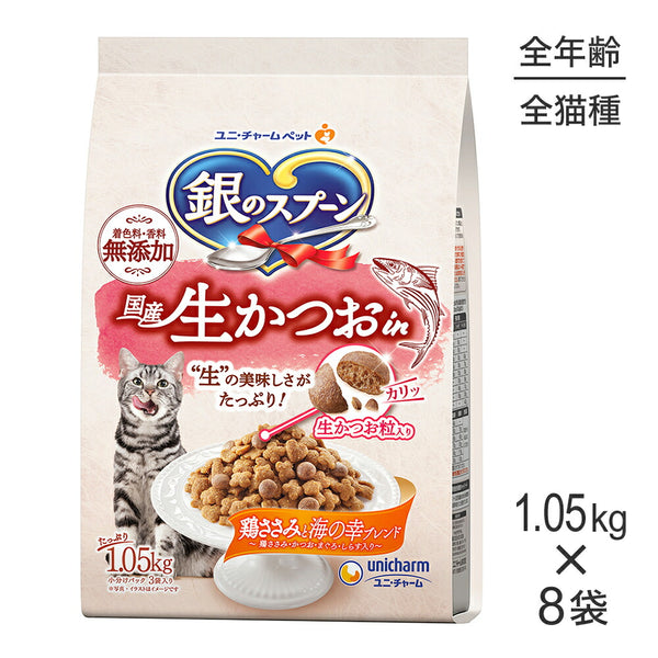 【1.05kg×8袋】ユニ・チャーム 銀のスプーン 国産生かつおin 全年齢用 鶏ささみと海の幸ブレンド (猫・キャット)
