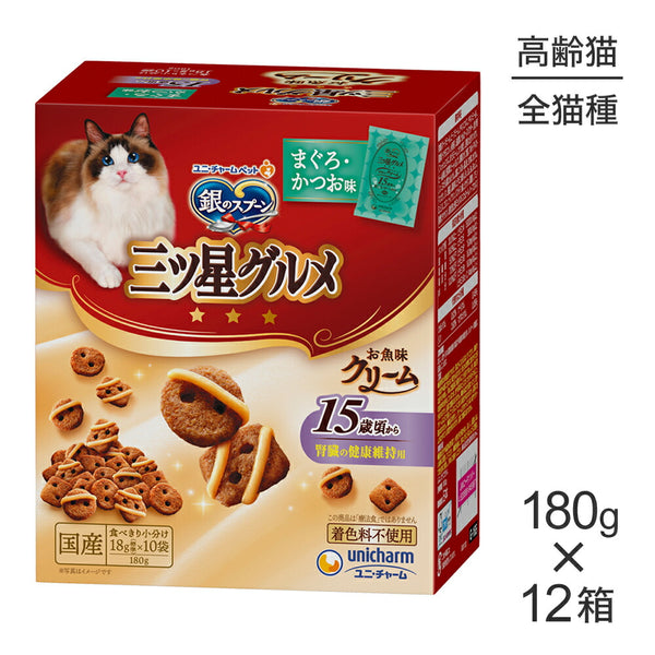 【180g×12箱】ユニ・チャーム 銀のスプーン 三ツ星グルメ お魚味クリーム 15歳頃から (猫・キャット)