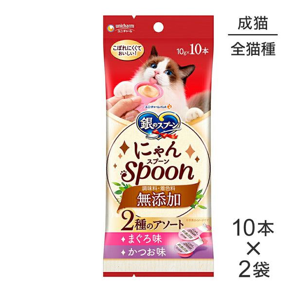 【メール便】【10g×10本×2袋】ユニ・チャーム 銀のスプーン おやつ にゃんSpoon 無添加 2種のアソート成猫用 まぐろ&かつお味 (猫・キャット)