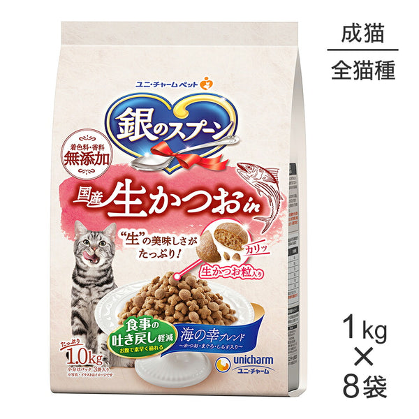【1kg×8袋】ユニ・チャーム 銀のスプーン 国産生かつおin 食事の吐き戻し軽減フード 成猫用 海の幸ブレンド (猫・キャット)