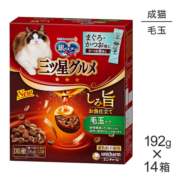 【192g×14箱】ユニ・チャーム 銀のスプーン 三ツ星グルメ しみ旨お魚仕立て 毛玉ケア 成猫用 (猫・キャット)