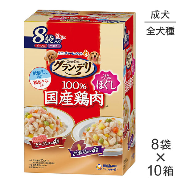 【640g×10箱】ユニ・チャーム グラン・デリ 100%国産鶏肉 パウチ ほぐし 成犬用 ビーフ入り&さつまいも入り (犬・ドッグ)