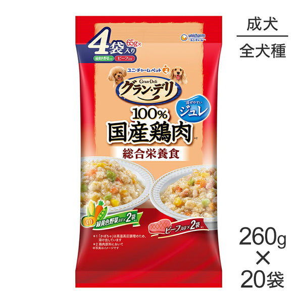 【260g×20袋】ユニ・チャーム グラン・デリ 100%国産鶏肉 パウチ 総合栄養食 ジュレ 成犬用 緑黄色野菜入り&ビーフ入り (犬・ドッグ)