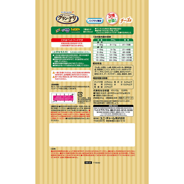 【20g×3袋】ユニ・チャーム グラン・デリ ワンちゃん専用サッポロポテト つぶつぶベジタブル チーズ味 (犬・ドッグ)