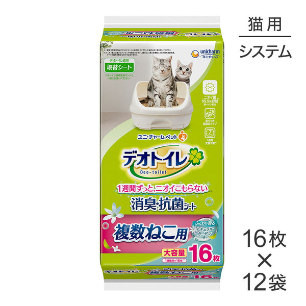 【16枚×12袋】ユニ・チャーム デオトイレ 複数ねこ用 ふんわり香る 消臭・抗菌シート ナチュラルガーデンの香り システムトイレ用 (猫・キャット)