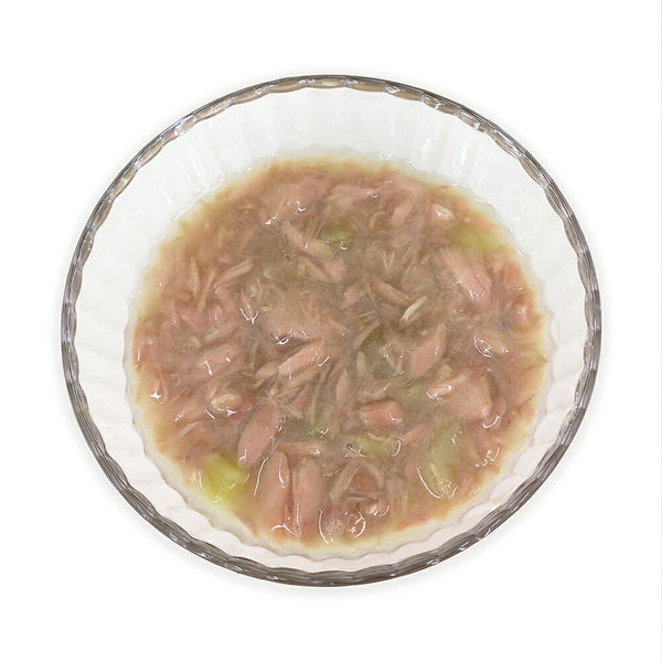 水、まぐろ、増粘安定剤(タピオカ澱粉、グァーガム)、キウイ、大豆油、香料、ミネラル類(Ca、P、K、クロライド、Fe、Zn、Mn、Cu、Se、I)、フラクトオリゴ糖、タウリン、ビタミン類(コリン、E、B1、A、ナイアシン、パントテン酸Ca、D3、B2、B6、ビオチン、B12、葉酸、K3)