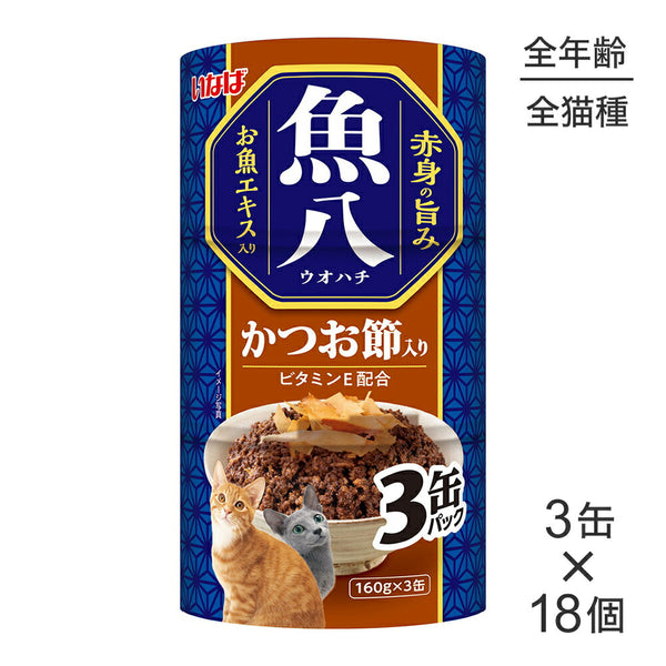 【(160g×3缶)×18個】いなば 魚八 かつお節入り ウェット (猫・キャット)
