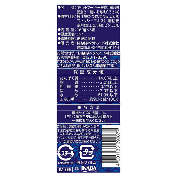 【(160g×3缶)×18個】いなば 魚八 しらす入り ウェット (猫・キャット)