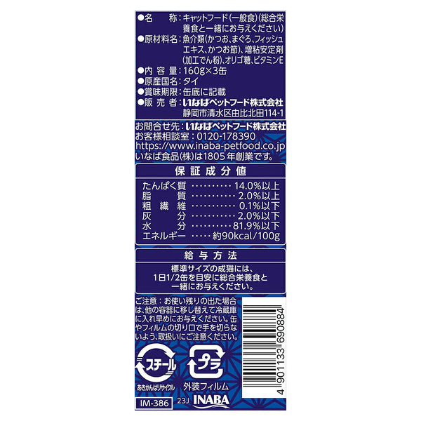 【(160g×3缶)×18個】いなば 魚八 高齢猫用 かつお節入り ウェット (猫・キャット)
