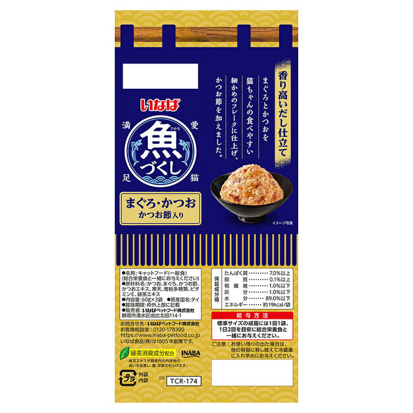 【(60g×3袋)×24個】いなば 魚づくし まぐろ・かつお かつお節入り ウェット パウチ (猫・キャット)