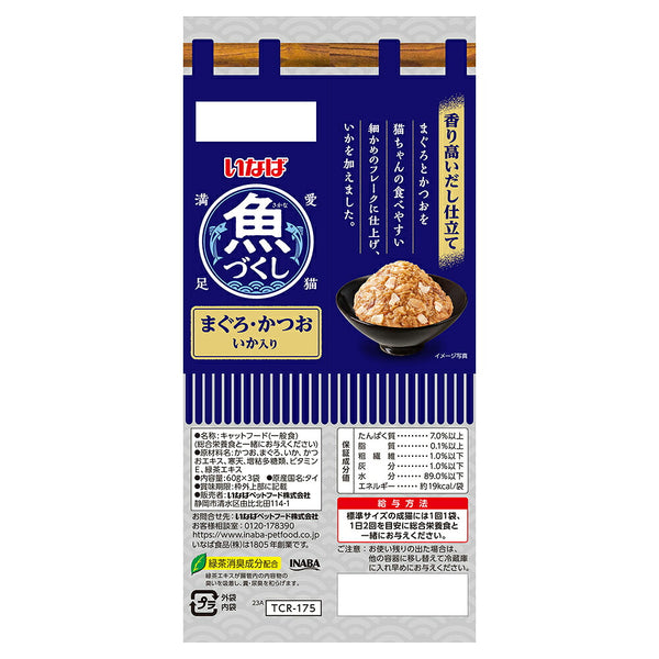 【(60g×3袋)×24個】いなば 魚づくし まぐろ・かつお いか入り ウェット パウチ (猫・キャット)