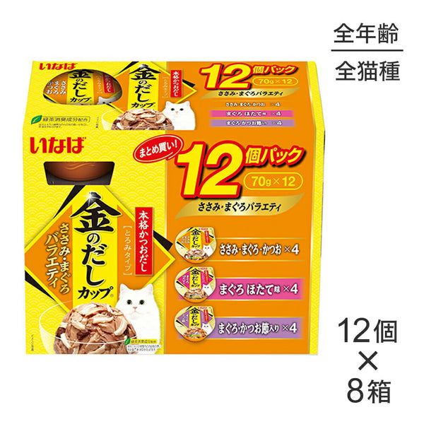【(70g×12個)×8箱】いなば 金のだしカップ ささみ・まぐろバラエティ ウェット (猫・キャット)