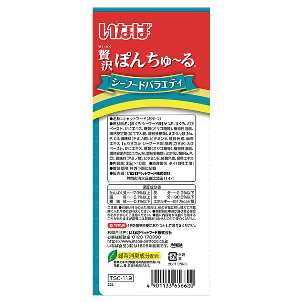 【(35g×10個)×16袋】いなば 贅沢ぽんちゅ~る シーフードバラエティ (猫・キャット)