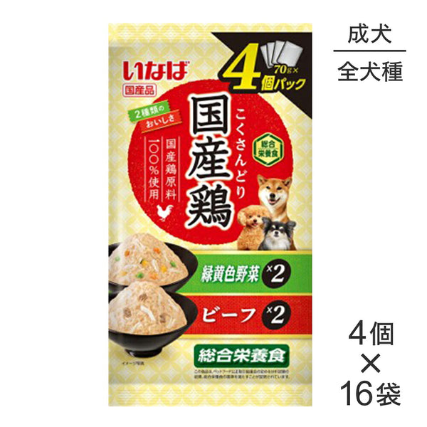 【(70g×4個)×16袋】いなば 国産鶏 総合栄養食 成犬用 緑黄色野菜・ビーフバラエティ パウチ ウェット (犬・ドッグ)