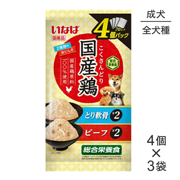 【メール便】【(70g×4個)×3袋】いなば 国産鶏 総合栄養食 成犬用 とり軟骨・ビーフバラエティ パウチ ウェット (犬・ドッグ)