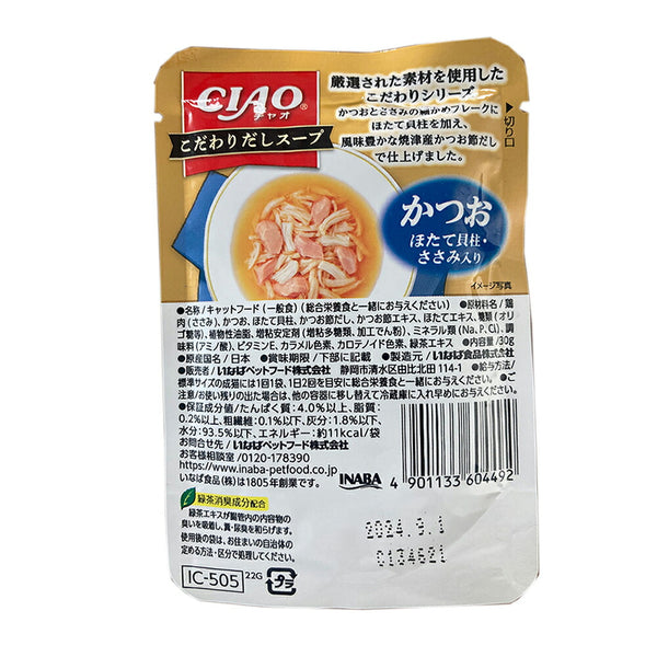 【30g×96袋】いなば CIAO こだわりだしスープ かつお ほたて貝柱・ささみ入り ウェット パウチ (猫・キャット)
