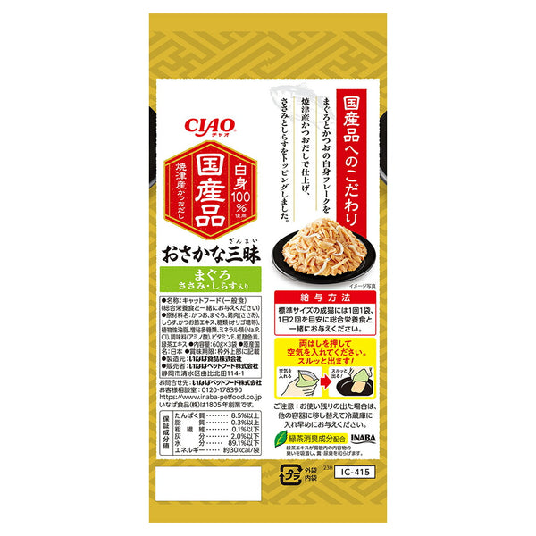 【(60g×3袋)×8袋】いなば CIAO おさかな三昧 まぐろ ささみ・しらす入り ウェット パウチ (猫・キャット)