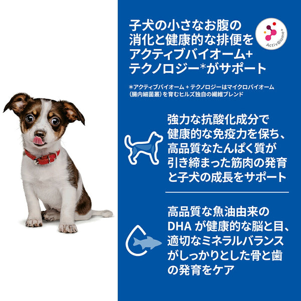 子犬の小さなお腹の消化と健康的な排便をアクティブバイオーム+テクノロジー*がサポート。