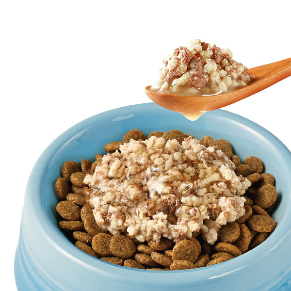 やわらかく食べやすい形状です。ドライフードにトッピングしてお使いください。