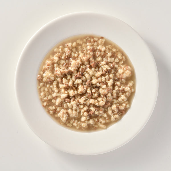 国産の鶏肉とレバーのおいしさを活かしたスープ仕立てのウェットフードです。