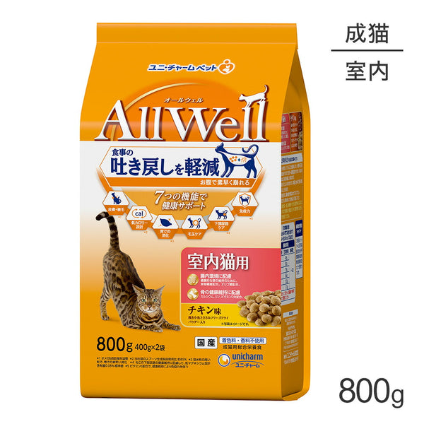 ユニ・チャーム AllWell 室内猫用 チキン味挽き小魚とささみフリーズドライパウダー入り 800g (400g×2袋) (猫・キャット)