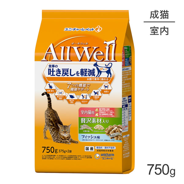 ユニ・チャーム AllWell 室内猫用 贅沢素材入りフィッシュ味天然小魚とささみフリーズドライ入り 750g (375g×2袋) (猫・キャット)