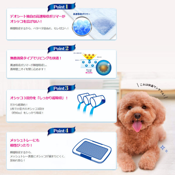 ●1枚で小型犬のオシッコ5回分(約150cc)を超吸収し経済的 ※小型犬の平均オシッコ量から算出